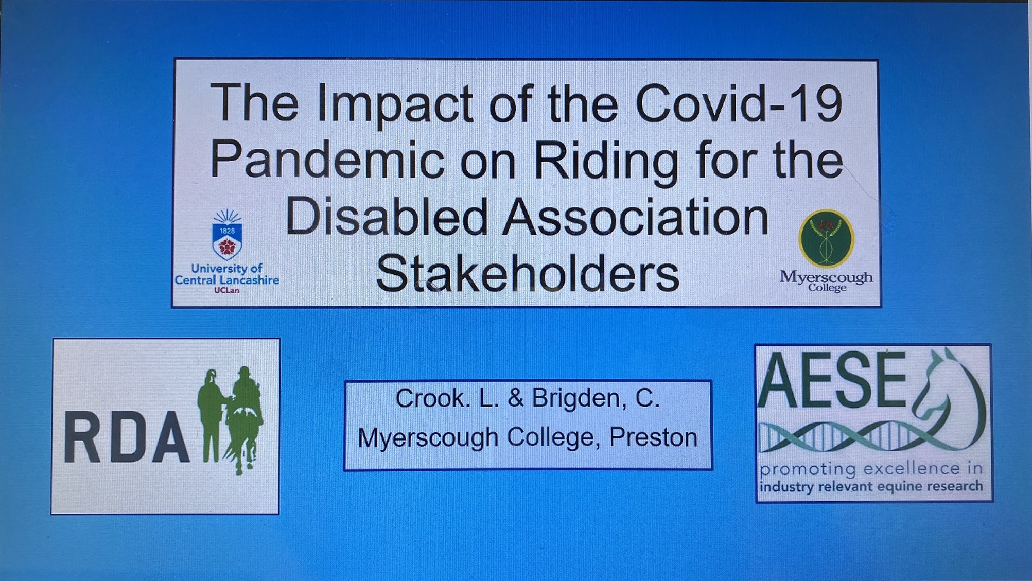BA (Hons) graduate Leah Crook presented her findings into the impacts of Covid-Lockdown on stakeholders of the Riding for the Disabled Association. This project was conducted with the kind support of the RDA, who shared their survey data with Leah for further analysis.